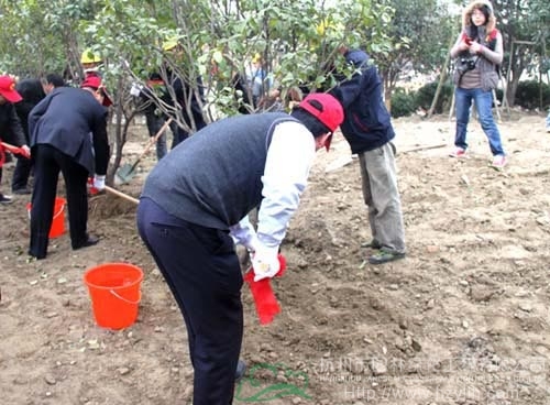 在活动现场,主持人介绍了植树活动宗旨、植树工作的安排后,到场的拱墅区政府领导、中国铁建国际城副总经理倪志宇相继发表了各自的低碳宣言。接着,各位领导拿起工具亲自培土、浇水,种下了一棵棵茁壮的桂花树,期待花香满溢,许愿绿树长青。杭州市园林绿化工程有限公司项目部积极做好此次活动的配合工作,助中国铁建植树节活动成功举办。