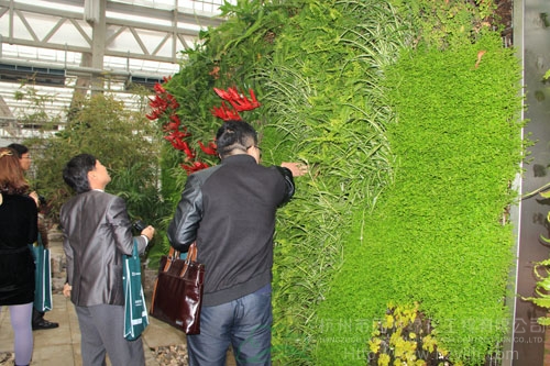 考察团一行参观青山湖•花园中心室内卖场的绿墙