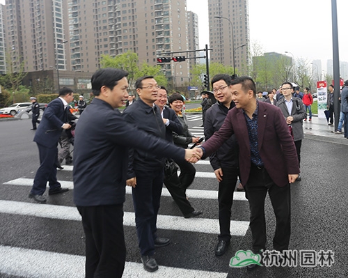 4月7日上午,浙江省委常委、杭州市委书记赵一德,杭州市委副书记、市长张鸿铭等市四套班子带领各区县及相关部门负责人,冒雨检查新塘路综合整治工程情况。开云足球体育总裁张炎良陪同前往。