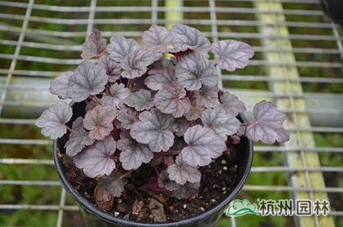 矾根又名小花肾形草,英文名为“Alum root”(因根部不规则膨胀而来),因此在引入中国的时候被翻译成了“矾根”。矾根叶色繁多,且叶色会随着季节、环境、温度和光照条件的变化而改变。例如,‘蜜桃黄’在春天的时候,叶子展现出细腻的银色光泽,成熟的叶片颜色会呈现紫色并略带玫瑰红;‘赤砂岩红’的叶色会从桃红色变为亮铜黄色,再变为绿色带有琥珀色;‘贵族紫’叶子的颜色会保持稳定的紫色,冬天的叶子会变成银色。