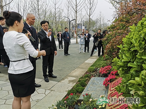 开园仪式后,与会嘉宾们开始巡园活动。蔡奇带领北京市四套班子领导、北京世园局领导、中国花卉协会领导等莅临浙江园参观。