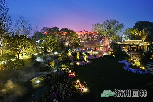 夜晚的浙江园如梦似幻
