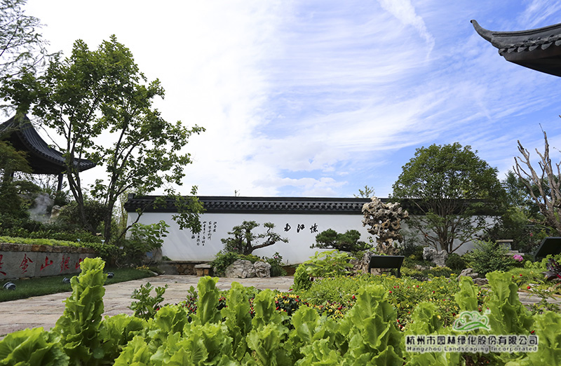 “浙江园采用浙派园林的造园手法,追求自然,因此,在材料的选择上,尽量做到原汁原味。园内的汀步、几座小桥桥面用的都是老石板,有一座桥面,我们甚至直接挑选了一块太湖石。这些材料没有太多人工雕琢的痕迹,显得古色古香,走进来,就给人一种亲切感,好像到了自己家的院子。这正是我们想要的家的味道,也是浙派园林所追求的一种自然意境。”吴小成的一席话,再一次生动诠释了造园者的用心和细心。
