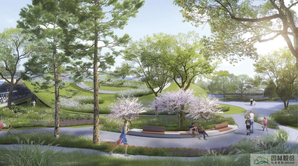 本区域位于场地中心,结合海绵城市理念,利用地形变化营造生态草沟、雨水花园等一系列生态景观。