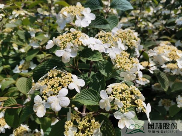 忍冬科荚蒾属,落叶灌木,树姿舒展。花序半球形,全为不孕花,开花时满树白花犹如积雪压枝,高洁素雅,花谢后则绿叶如碧,无论花叶均具有较好的景观效果。生长强健,喜欢散射光环境,适合工程应用或庭院观赏。