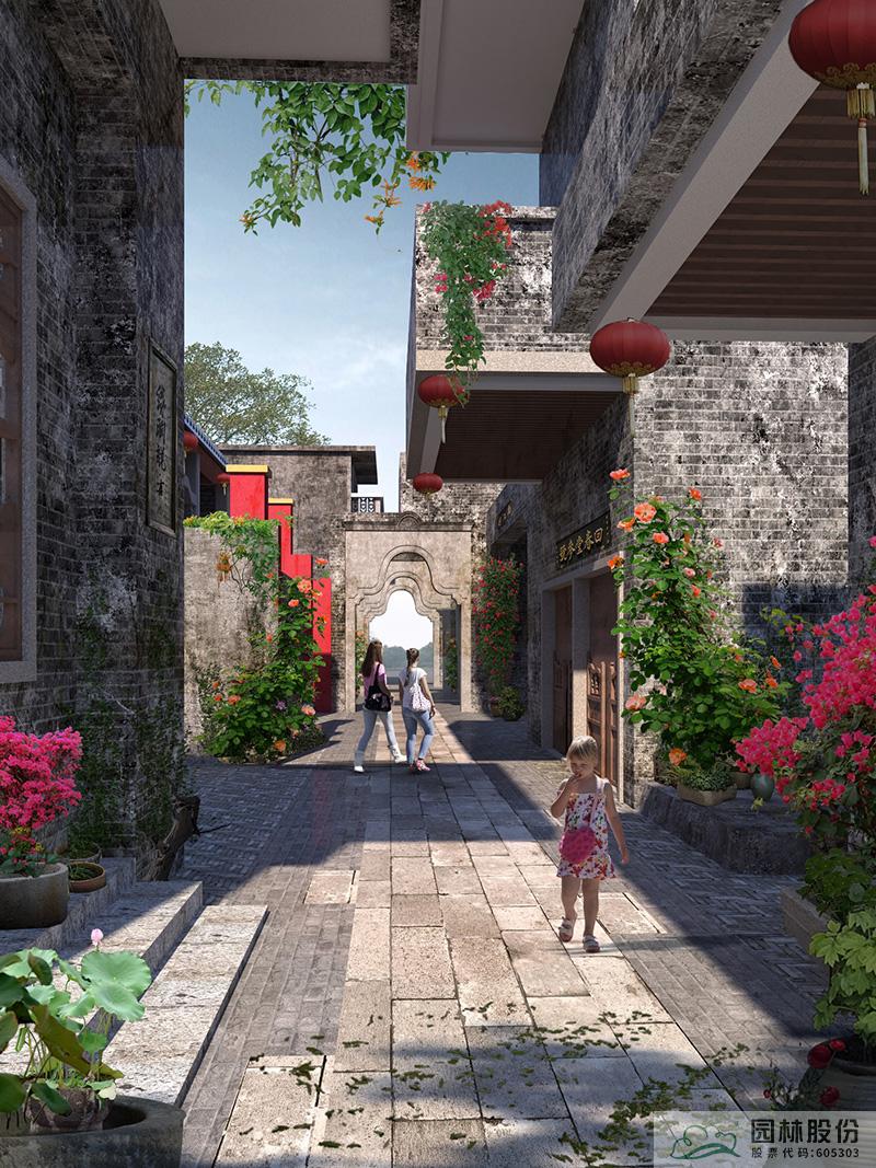 巷道改造设计说明:古巷芬芳段现状主要由青瓦青砖的建筑、青瓦夯土墙建筑组成,巷子宽度平均约2米,设计建议局部脱落露出夯土内里的恢复夯土墙原状,进行墙面立体绿化、铺装、排水沟、雨箅子等改造。