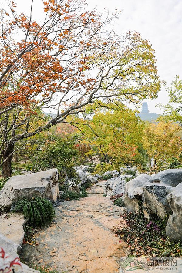 午后的暖阳穿过竹林,在碎石拼装的园路上洒下斑驳光影,沿着幽静的小路漫步前行,来到“竹稳”展区。此处选取西湖环境中“茂林修竹”的元素,以毛竹种植为主,结合观赏价值较高的金镶玉竹、龟甲竹等,营造出曲径通幽的景观效果。