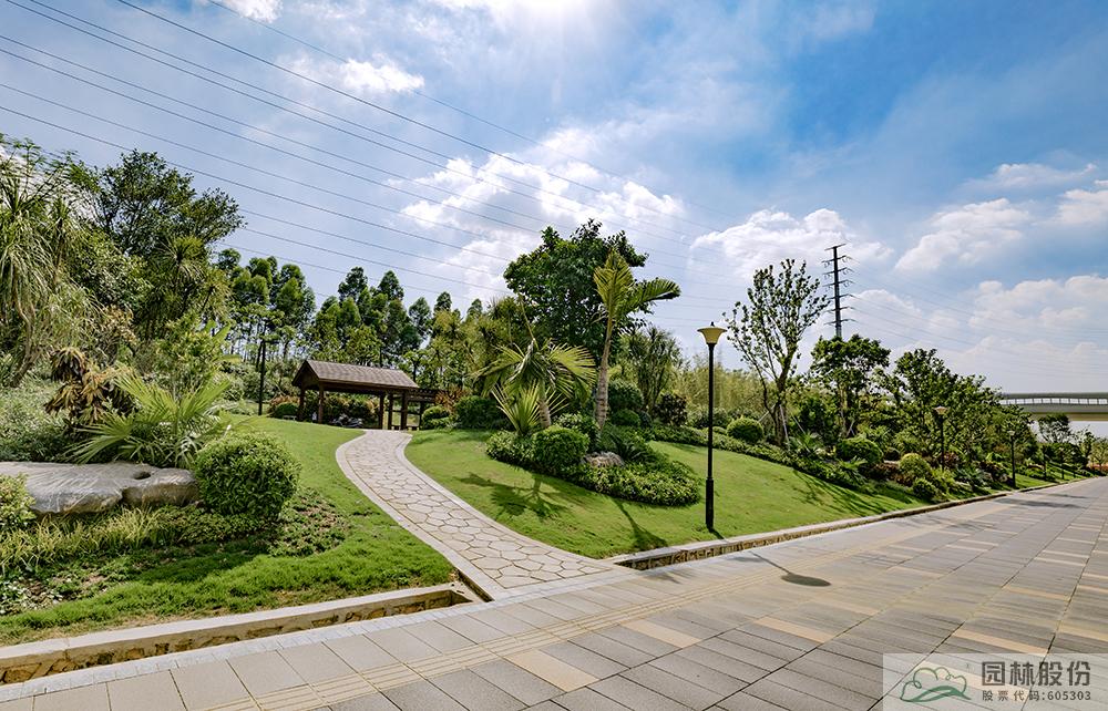 凤举路(光源四路至光明大道段)绿化景观提升项目位于深圳市光明区凤凰街道,南靠龙大高速,中部与创投路相交,临近龙大高速一侧现有绿化隔离带。项目建成后,集南国风光的大气与江南园林的秀美与一体,地势起伏有致,植物合理搭配,既有开阔通透的园路,也有曲径通幽的竹林;旱溪蜿蜒灵动,生态功能与景观功能共存,原木连廊亭榭,自然与艺术融合,塑石假山与堆坡造型相得益彰,人入其中,步移景异,让人流连忘返,舒适愉悦。